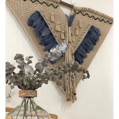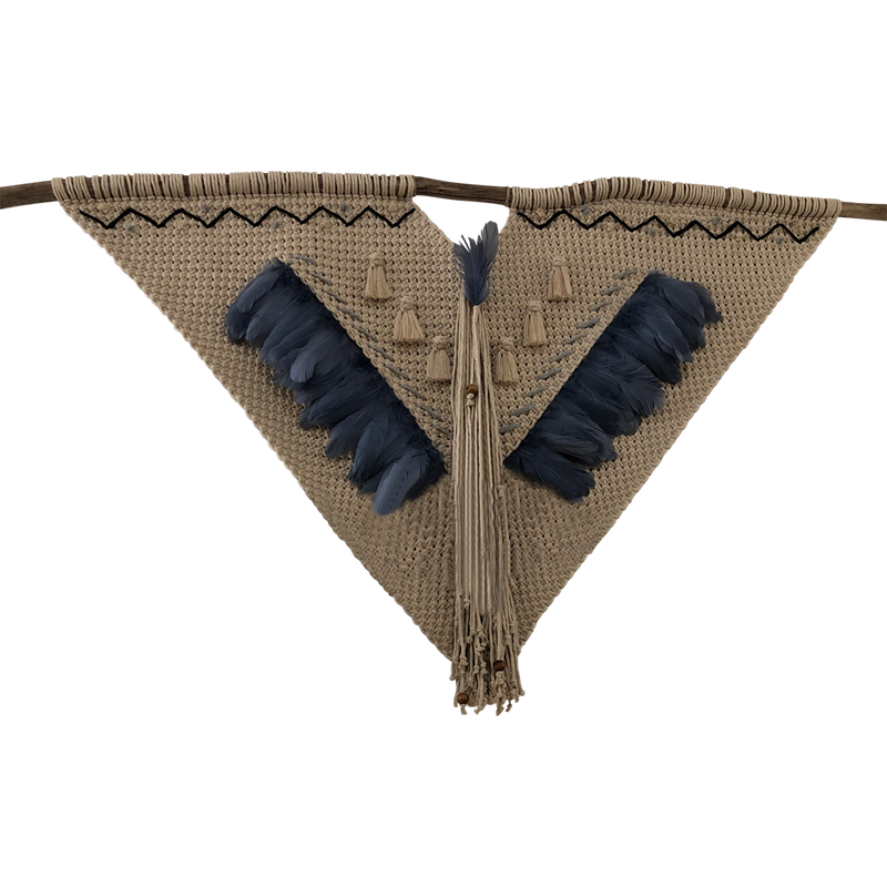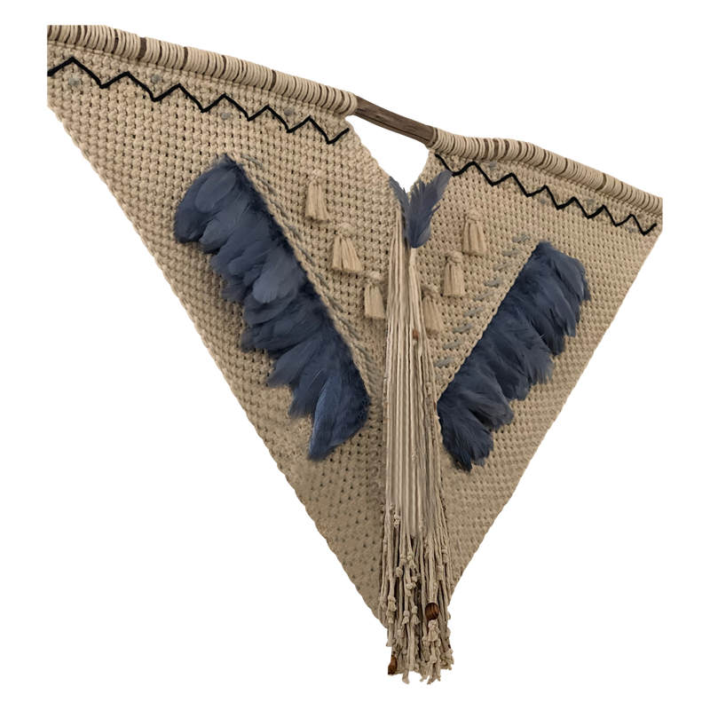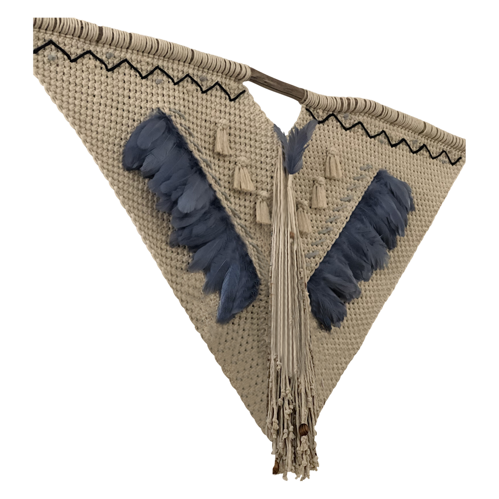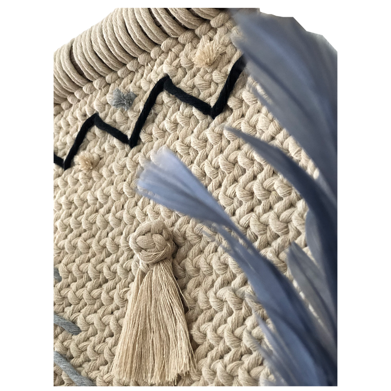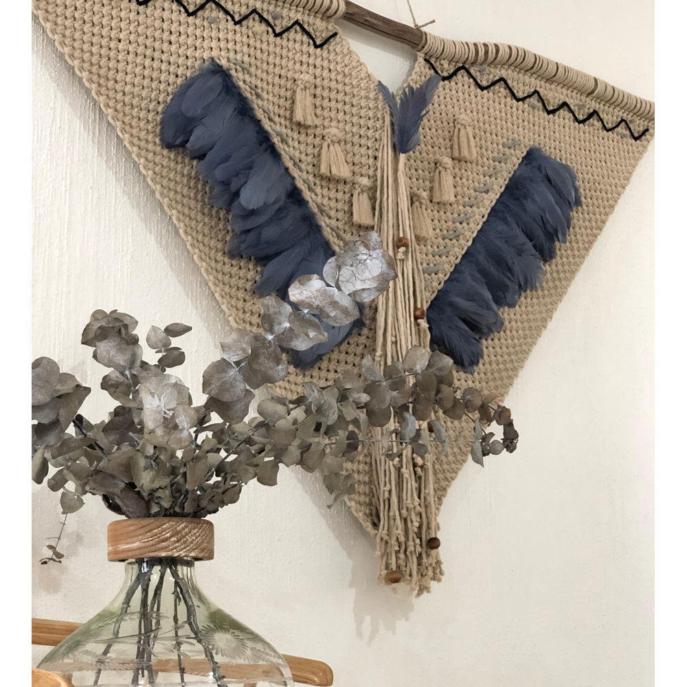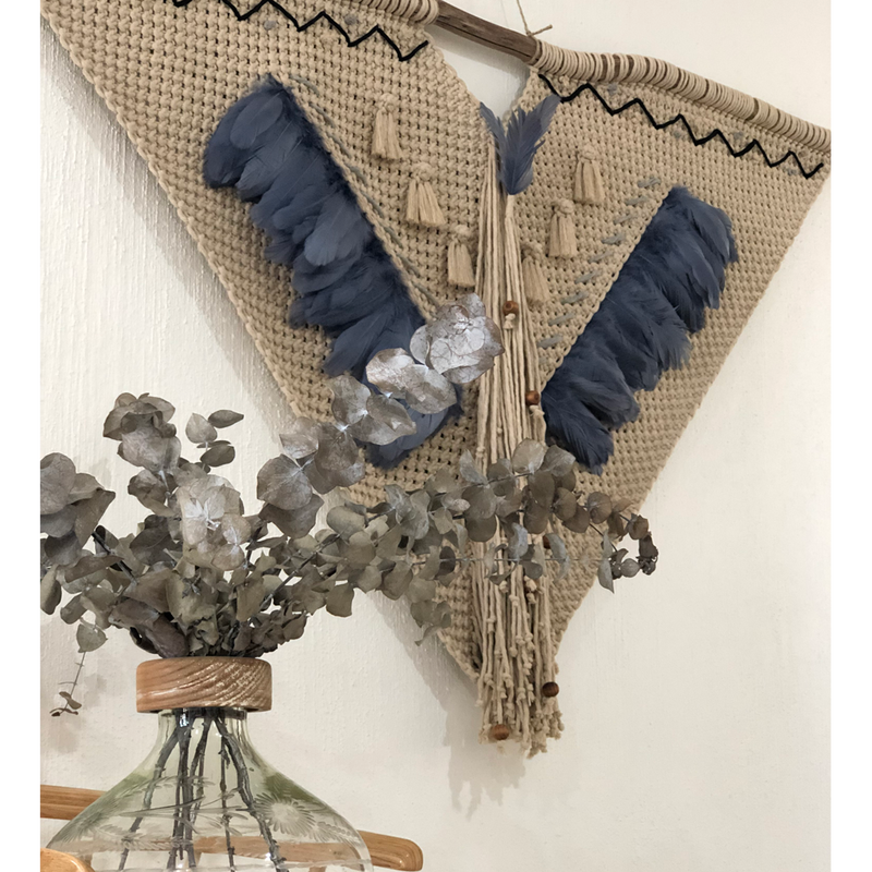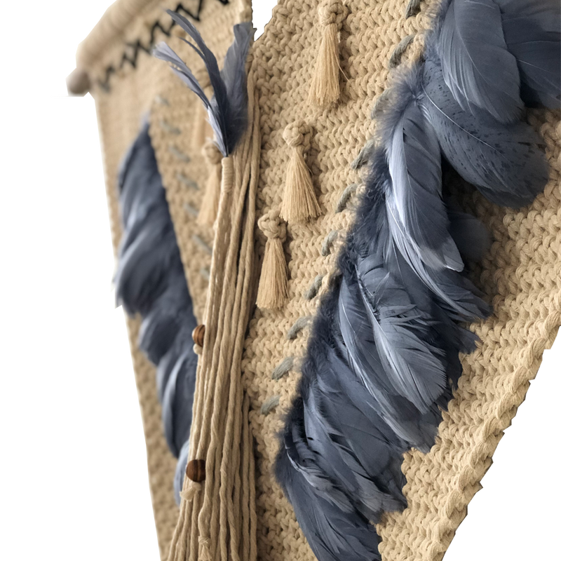 MAYA - TAPIZ DE MACRAMÉ DE ALGODÓN Y PLUMAS DE GANSO