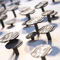 Técnica: Se utiliza un modelo impreso en 3D para hacer el molde y posteriormente el objeto de resina se talla a mano.