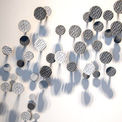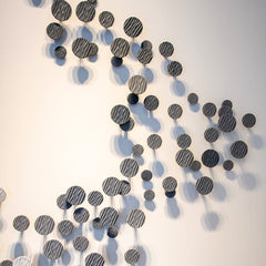 Mural compuesto de 3 piezas de diferentes medidas y alturas en forma de sinusoides, elaboradas artesanalmente.