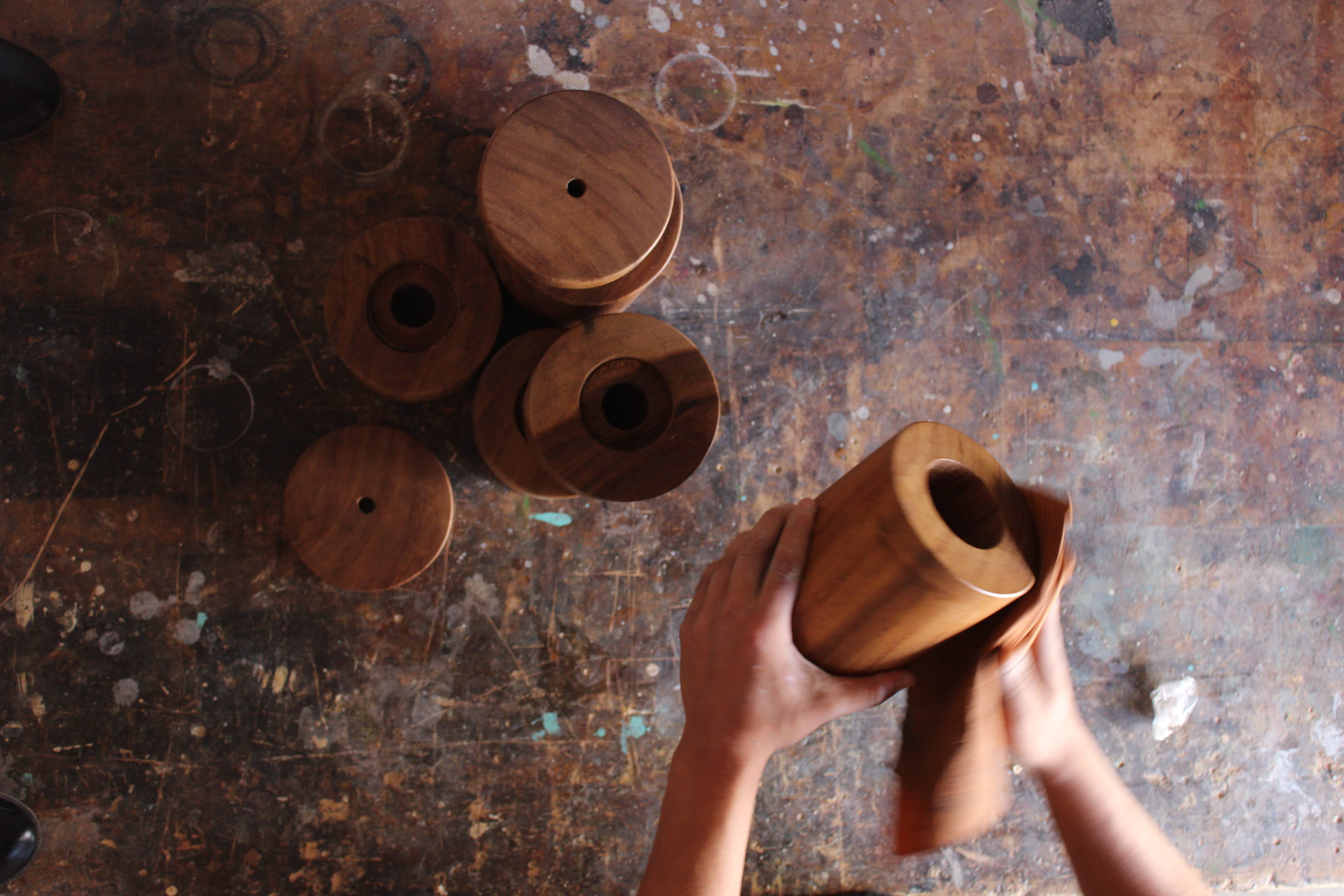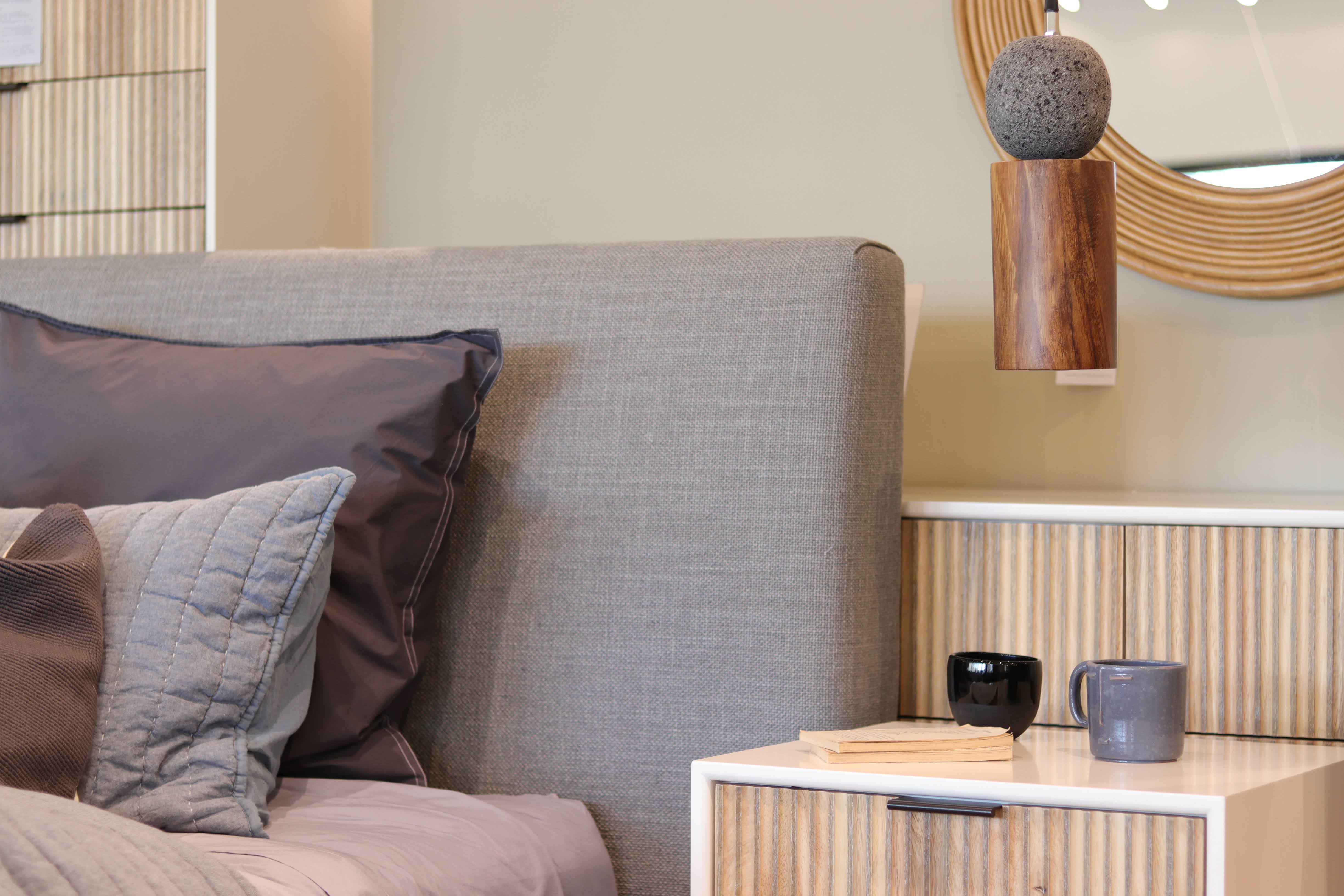Elegante y sencilla lámpara elaborada que juega con una mezcla de texturas y colores única.